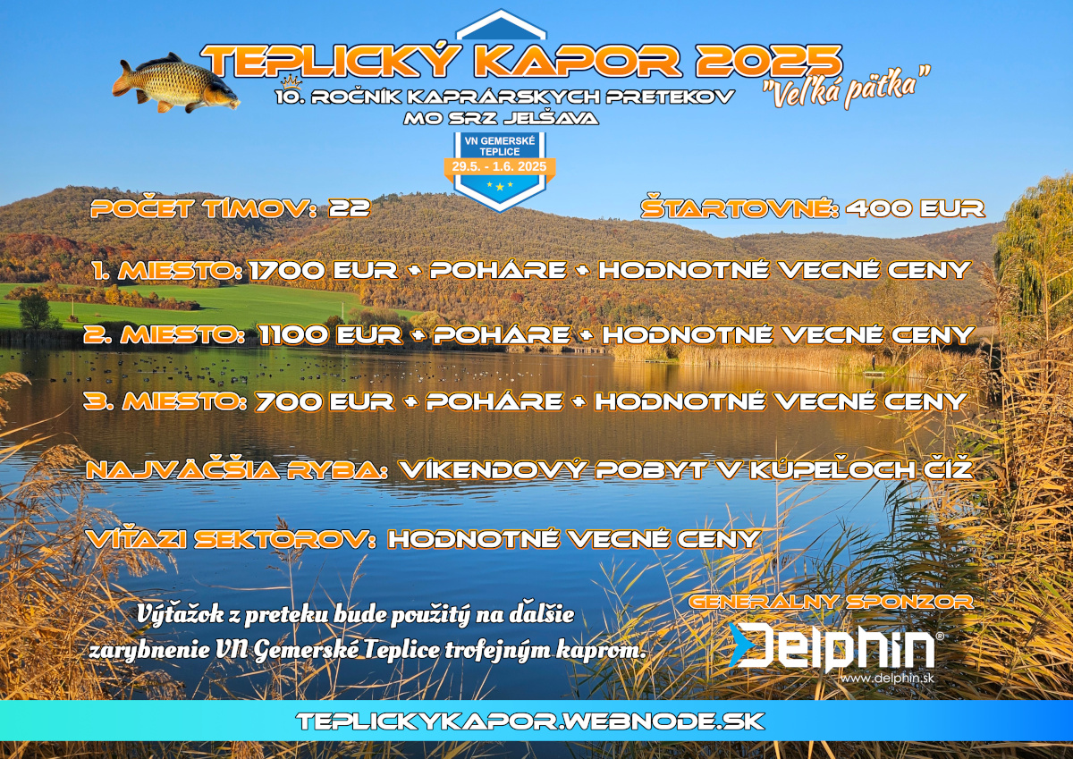 - Do súťaže sa započítava kapor nad 50cm (vrátane) a amur nad 60cm (vrátane).
